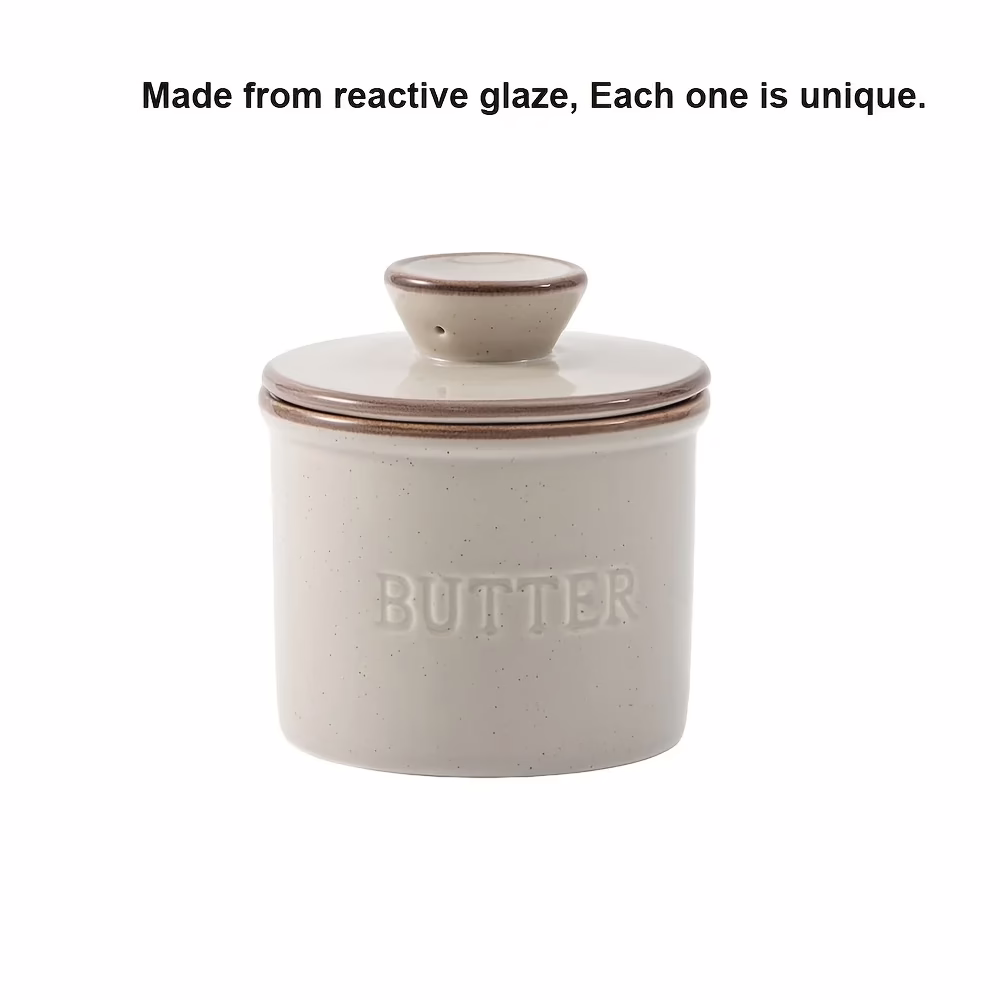 Designed for versatile use, this ceramic storage tank is perfect for butter, oils, spreads, sauces, sugar, or small pantry items. The snug-fitting lid helps maintain freshness while keeping contents protected on your countertop or in the refrigerator.