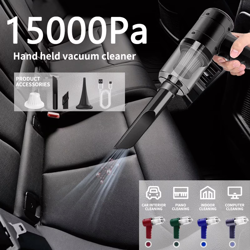 handheld car vacuum, cordless mini vacuum, 5-in-1 air duster vacuum, USB rechargeable vacuum, portable vacuum cleaner, 15000Pa car vacuum, lightweight handheld vacuum, HEPA filter car vacuum, high power vacuum for home office.